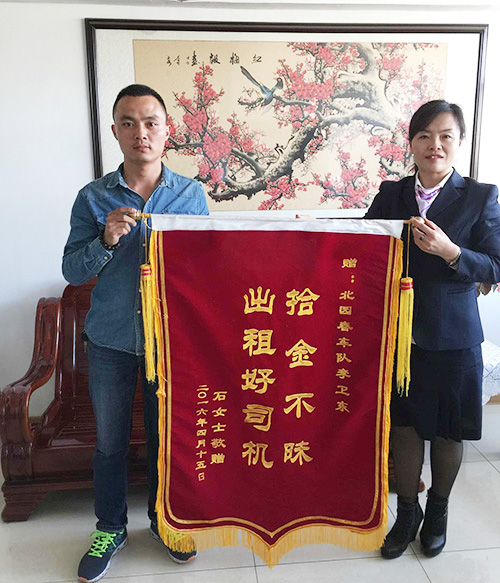 北園春運(yùn)輸公司出租車(chē)女司機(jī)拾金不昧送還失物